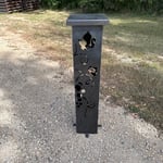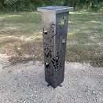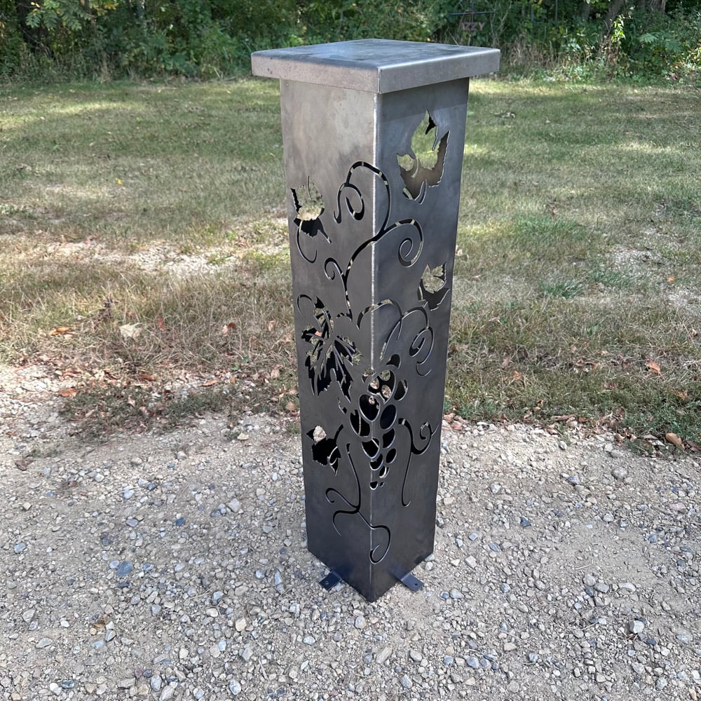 These plasma cut Garden Pillars with a Grape Vine Pattern are made from 14 gauge steel. Ready to stake in the ground in your garden or yard. Secure in the ground using large nails or ground stakes (not included). This item is raw steel with no finish, so it WILL rust over time.